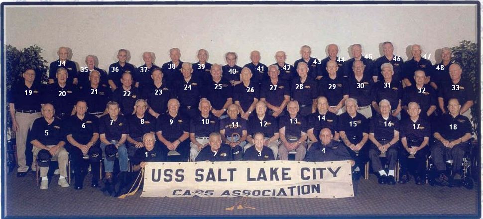 7. John Roberts 8. Robert Storey 9. William Leary 10. Arthur Mercer 11. Samuel Wells 12. J. Roy Stone 13. Oscar Silleman 14. Unidentified 15. M. R. Johnson 16. Ted Swenson 17. John A. McWaid 18. Charles F. Kepper 19. Raymond Amdahl 20. Richard Holmes 21. Robert Kohlmann 22. Richard Tatum 23. Walter Brophy 24. H. H. Jaekel 25. Louis Rehm 26. James Murphy 27. Huey Kinchen 28. Eugene Hudson 29. Unidentified 30. Wally Lucas 31. Doug Harkreader 32. John Goins 33. Robert Jackson 34. Frank Bell 35. Fran McCorriston 36. Sandy Oppenheimer 37. Vince Coda 38. Unidentified 39. Arch McGougan 40. Alvin Werner 41. George Asea 42. Lester Workman 43. Unidentified 44. Charles Rice 45. Nayef Samhat 46. Mike Atkinson 47. Charles Payne 48. Al Jowdy. |